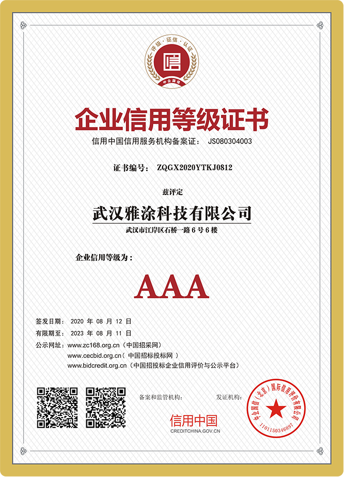 雅涂擁有20000㎡研發(fā)生產(chǎn)基地和500㎡營(yíng)銷(xiāo)中心,公司核心技術(shù)自主研發(fā)而成,已申請(qǐng)多個(gè)技術(shù)專(zhuān)利, 并通過(guò)ISO9001質(zhì)量體系、ISO14001環(huán)境體系雙認(rèn)證